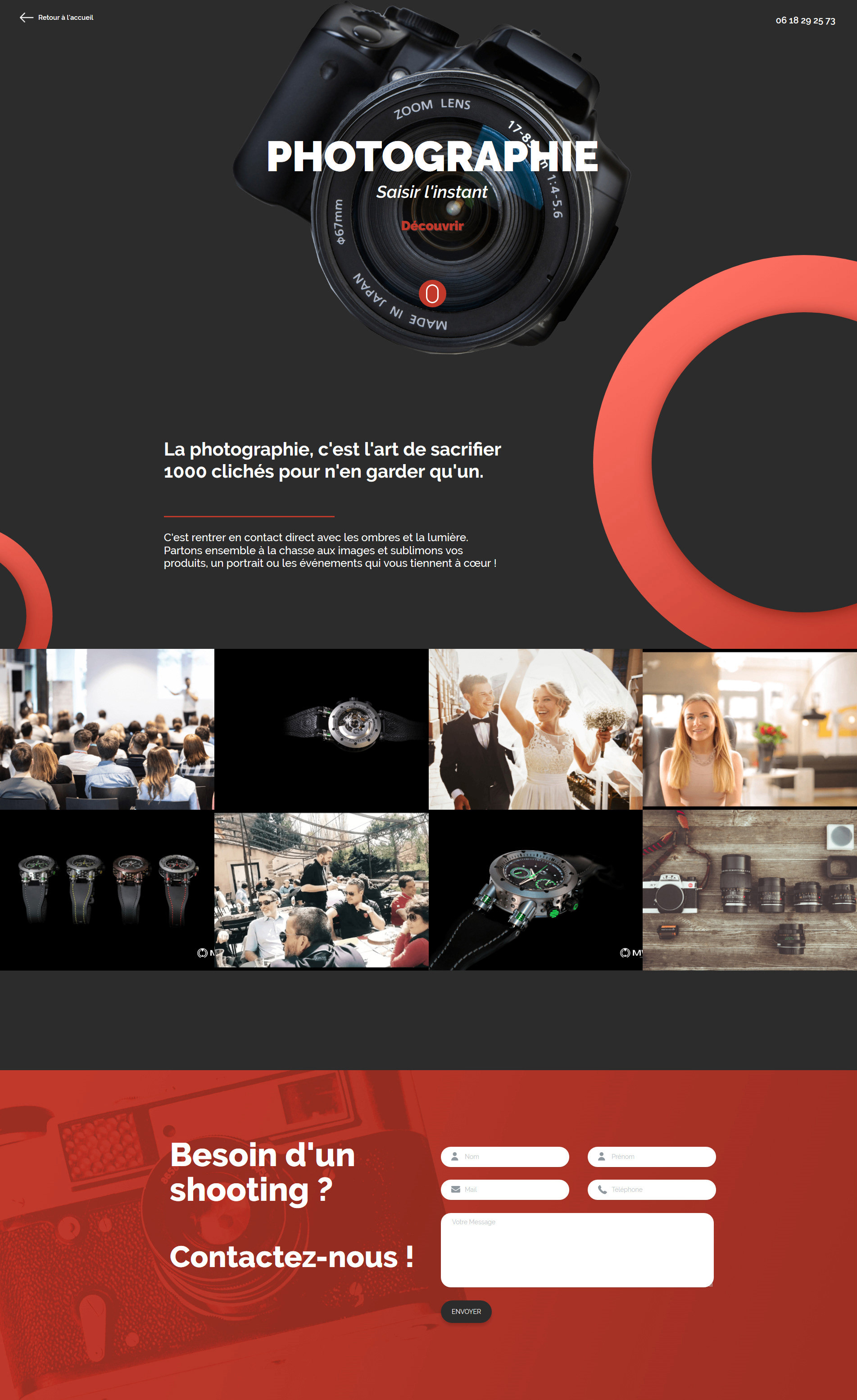 Landing page for a photography service